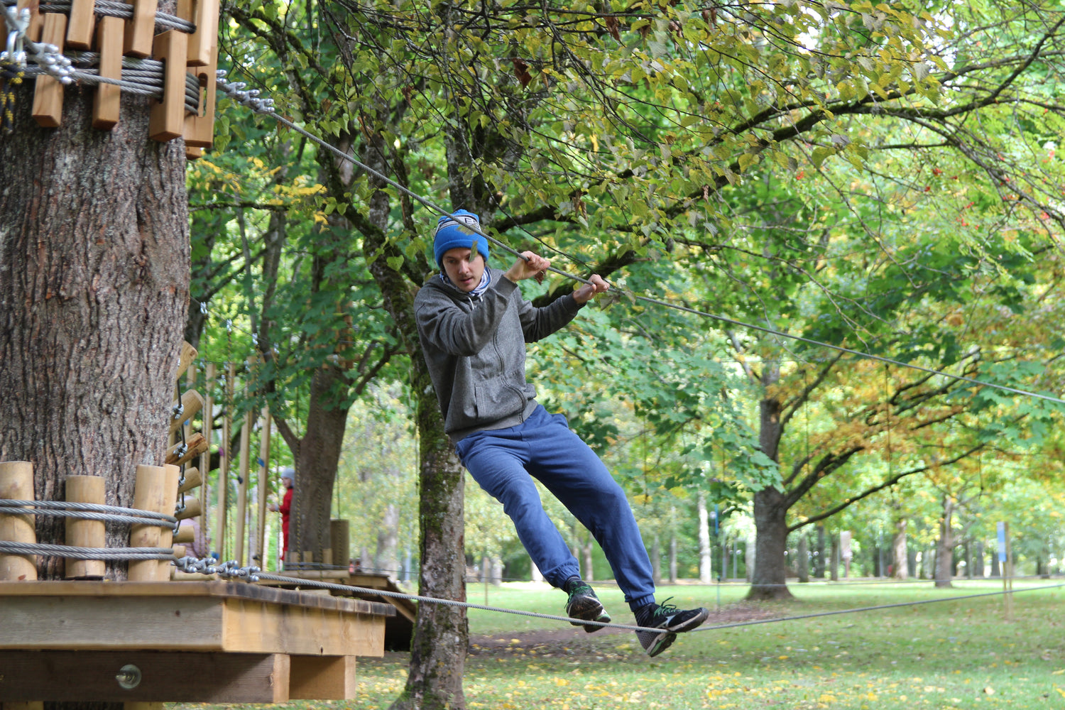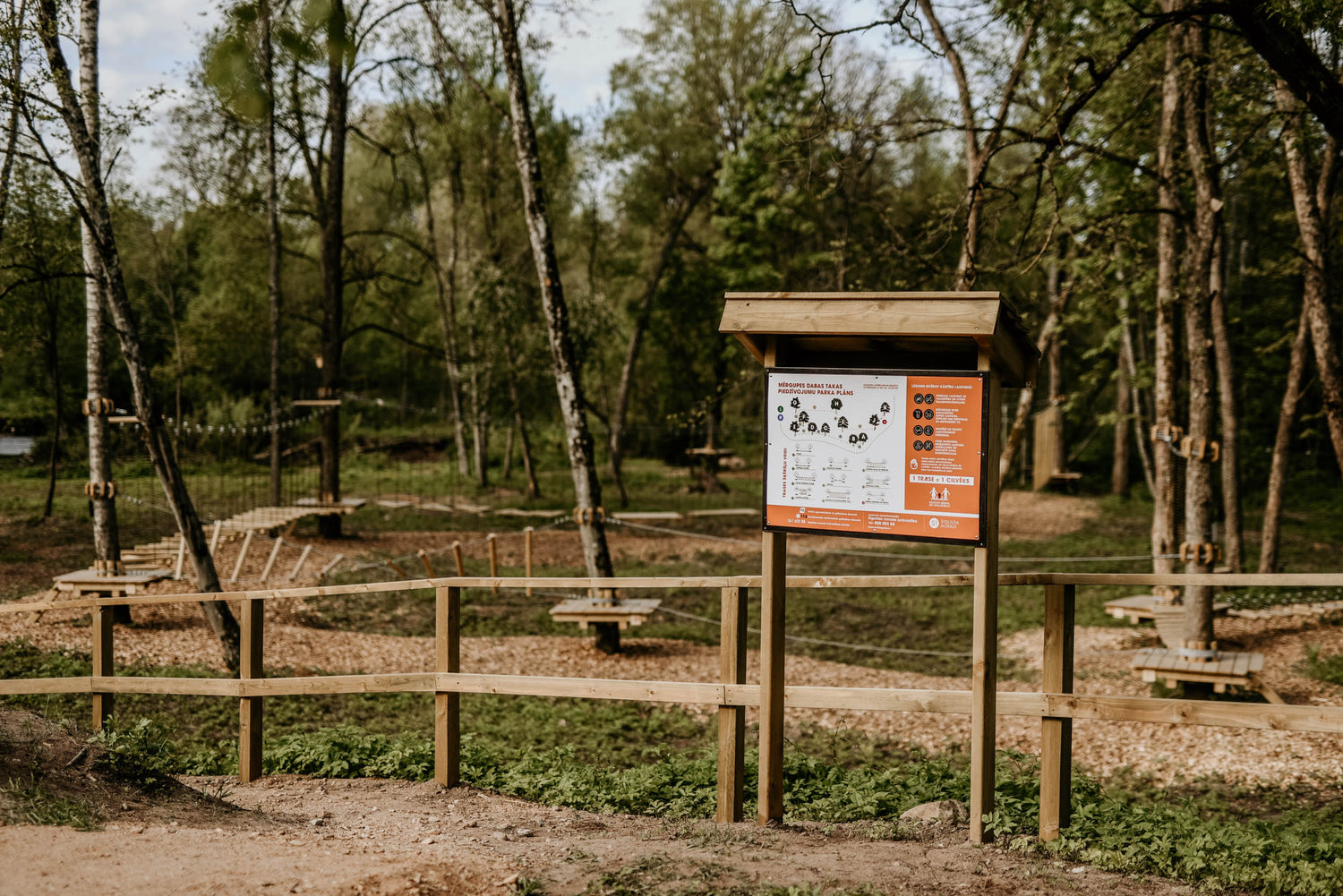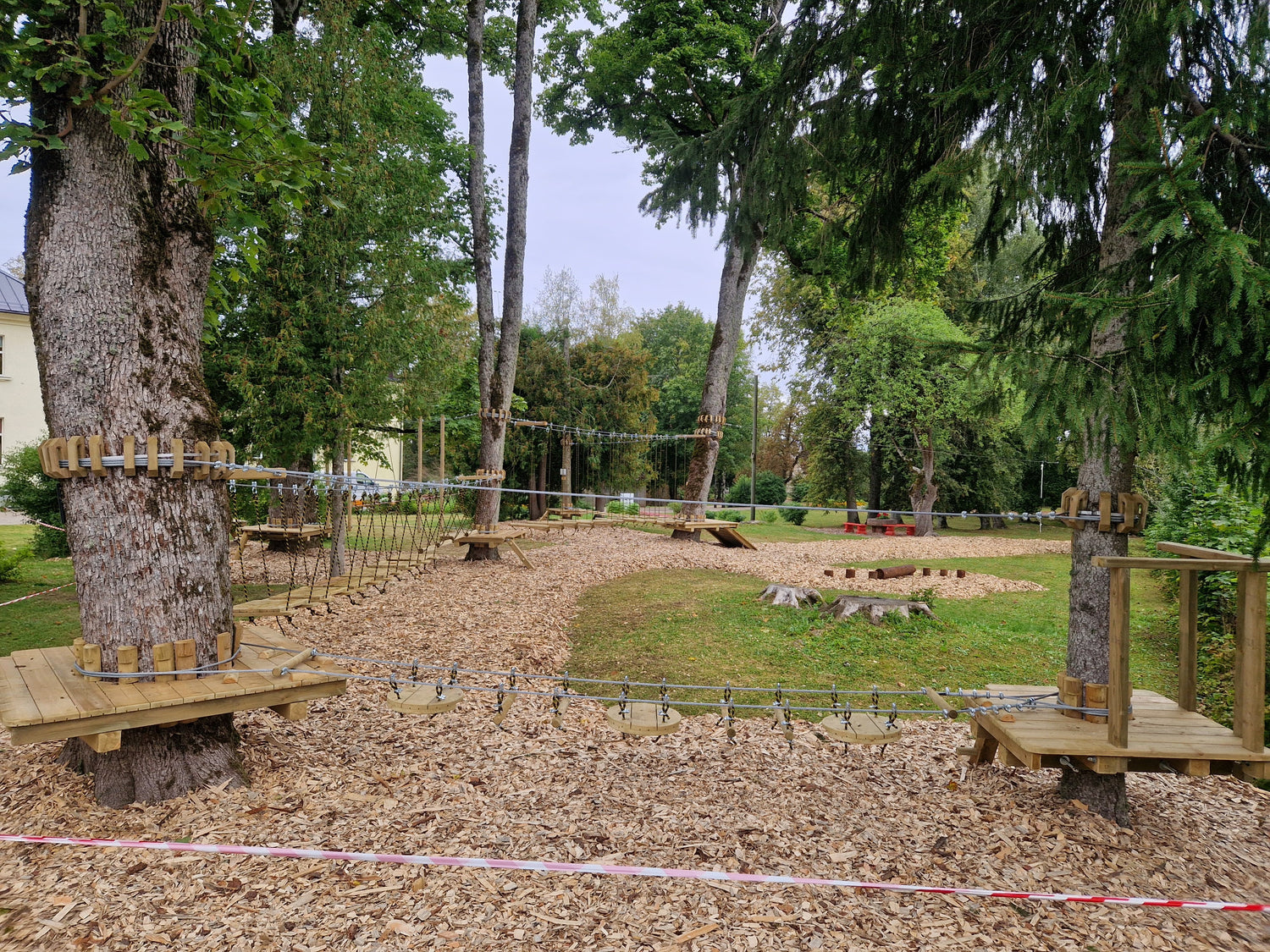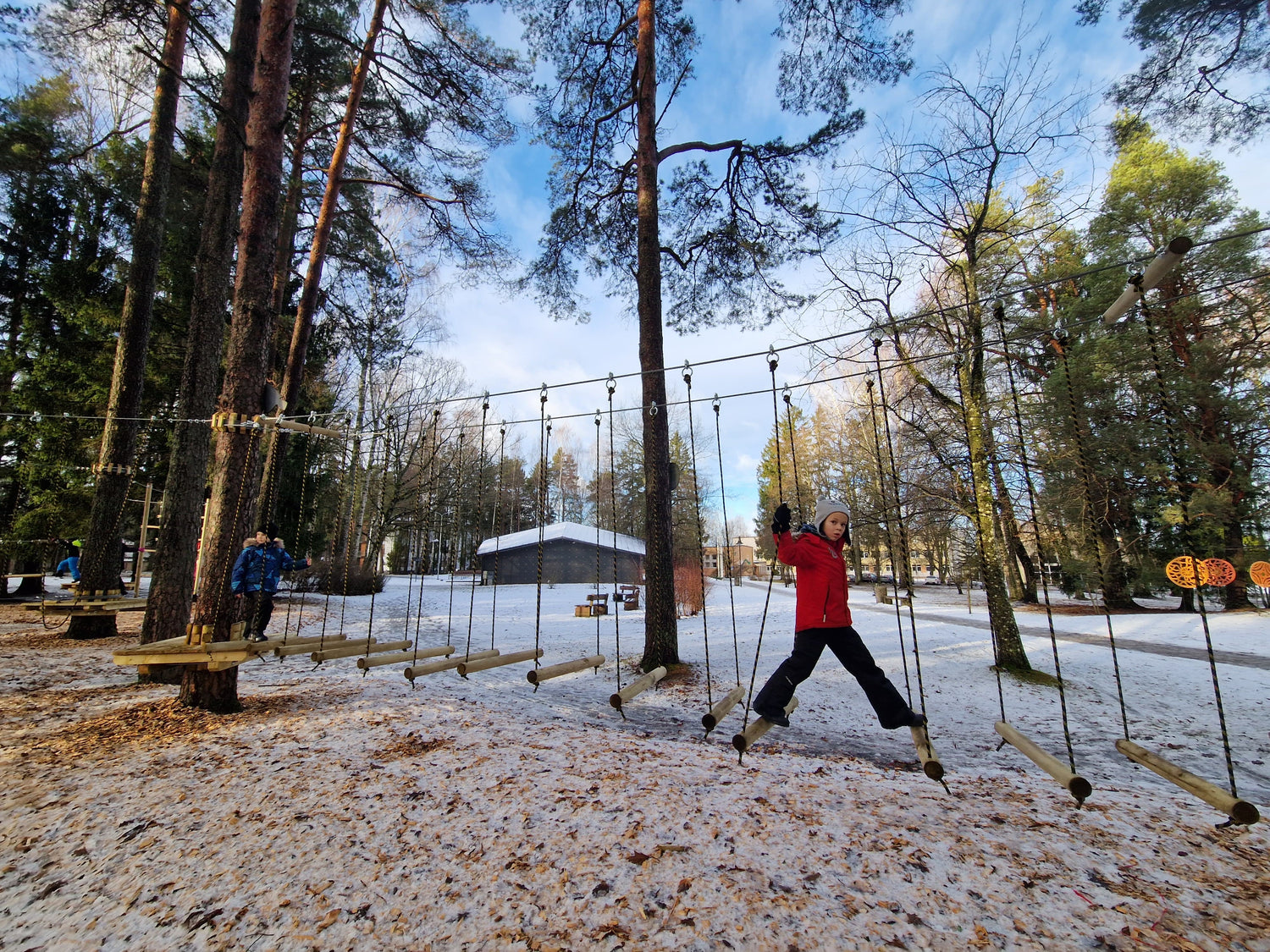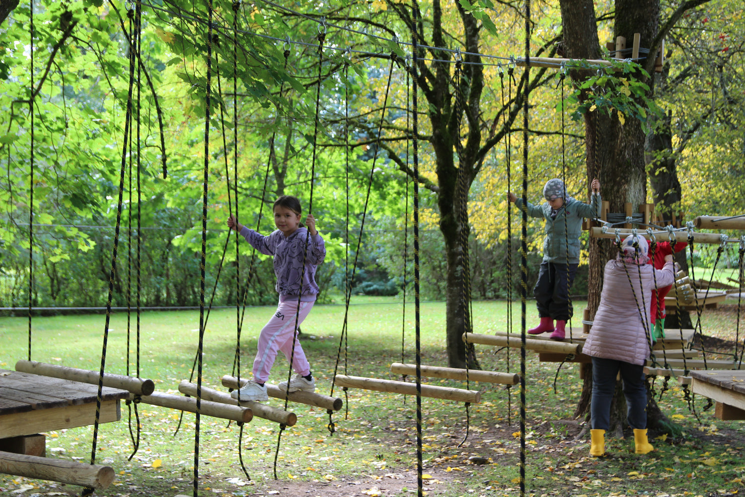 Parku dažādās šķēršļu trases ir piemērotas bērniem un pieaugušajiem ar dažādiem prasmju līmeņiem.