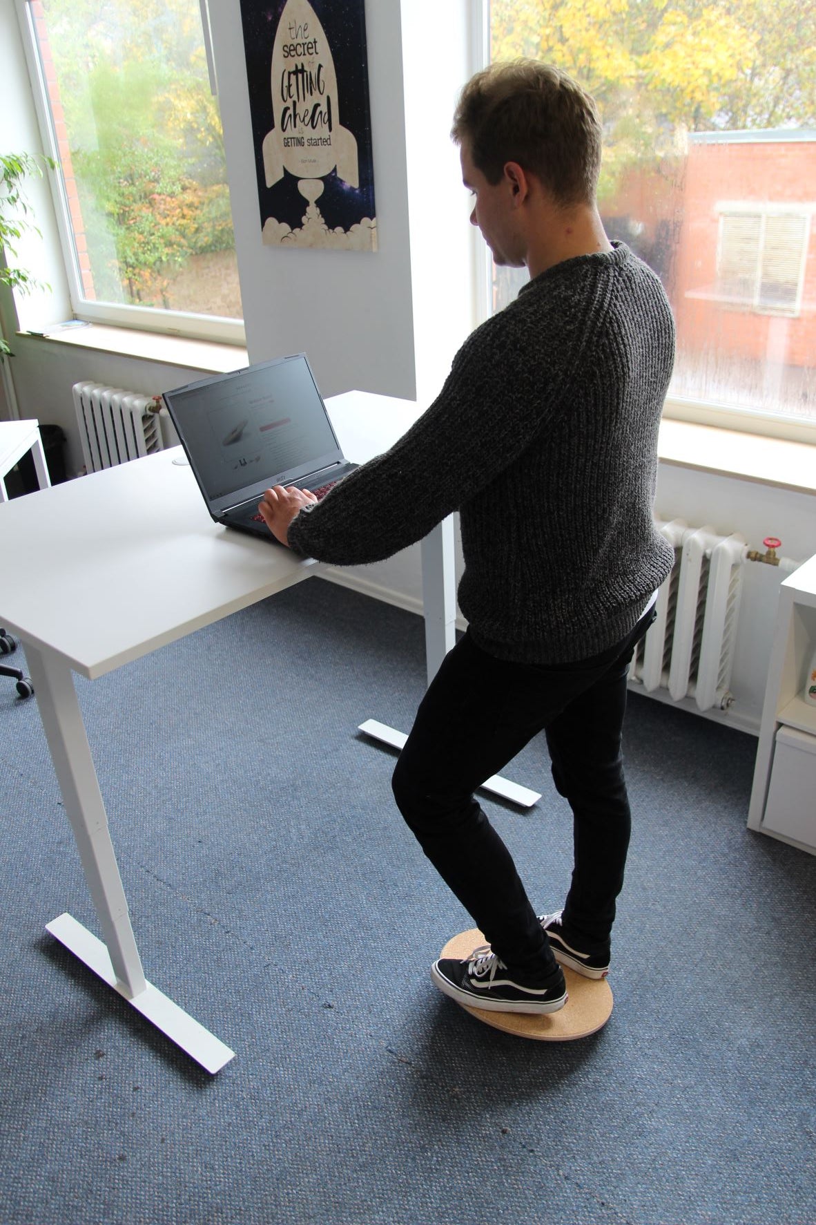 Balancing on a wobble board while working is a great way of reducing stress and feet fatigue.